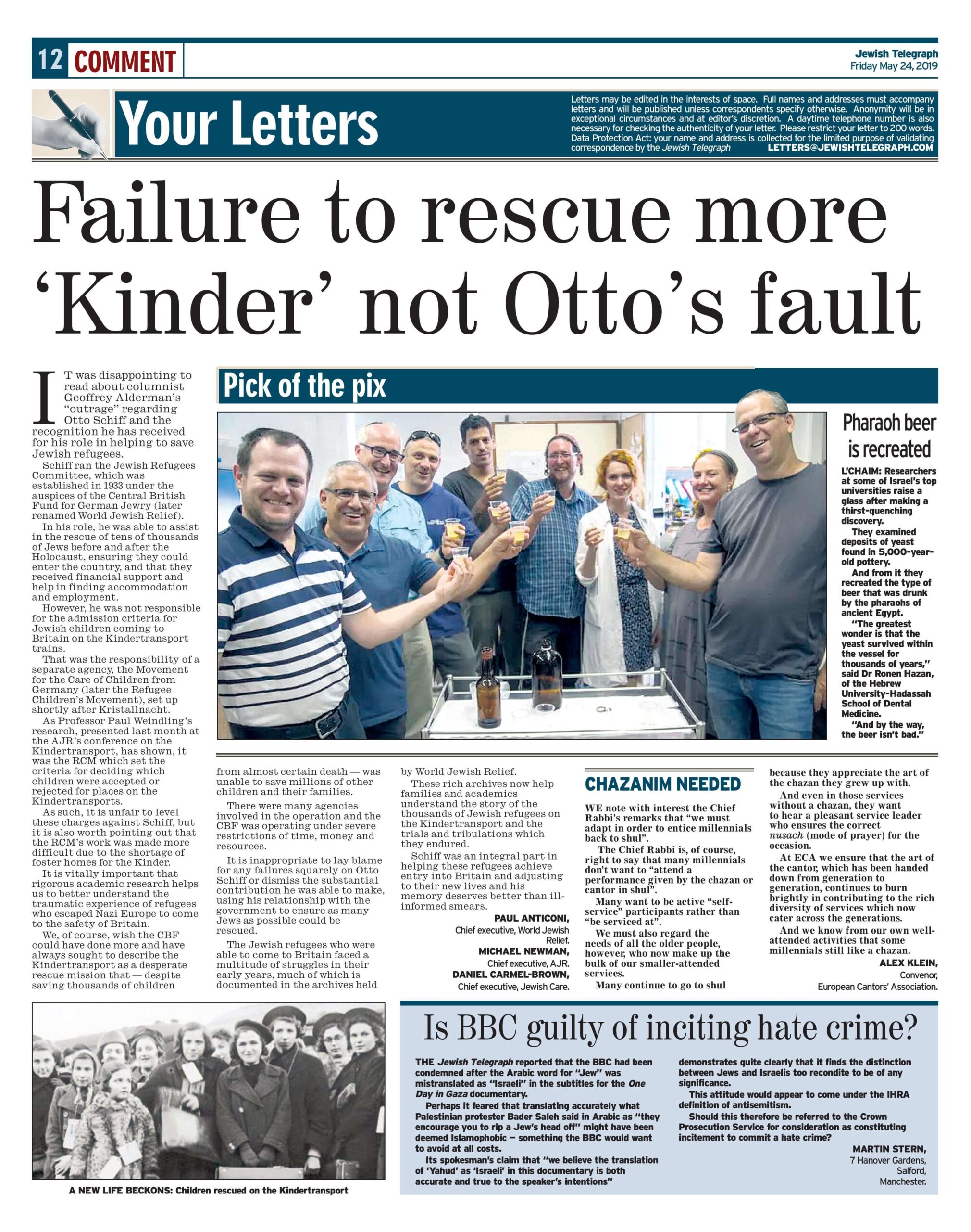 We were pleased to have our letter printed in the Jewish Telegraph of 24 May, 2019 in which we, along with World Jewish Relief and Jewish Care, put the record straight regarding Otto Schiff and the Kindertransport. Click here to read a pdf version: Letter Jewish Telegraph May 2019