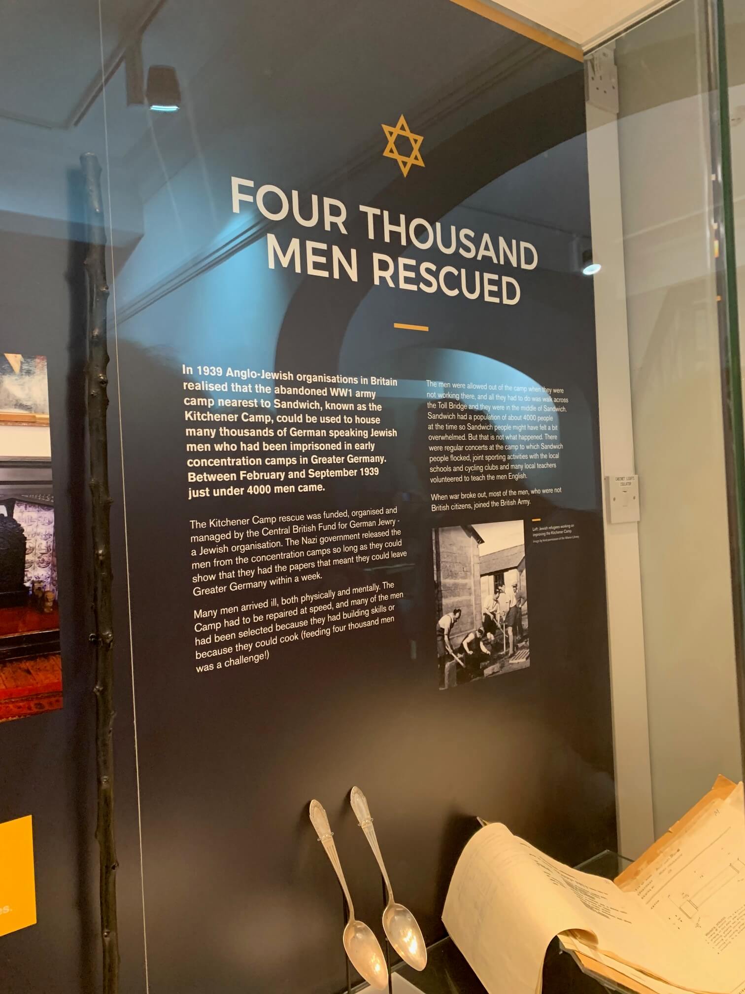 Kitchener had its own orchestra and football team and even a 1000-seater cinema built with money donated by the Odeon Cinema tycoon, Oscar Deutsch. During summer 1939, a few of the men managed to get their wives and children out of Greater Germany using the system of ‘domestic service visas’ for their wives and the Kindertransports for their children. However, most families were not able to get out of Germany in time.