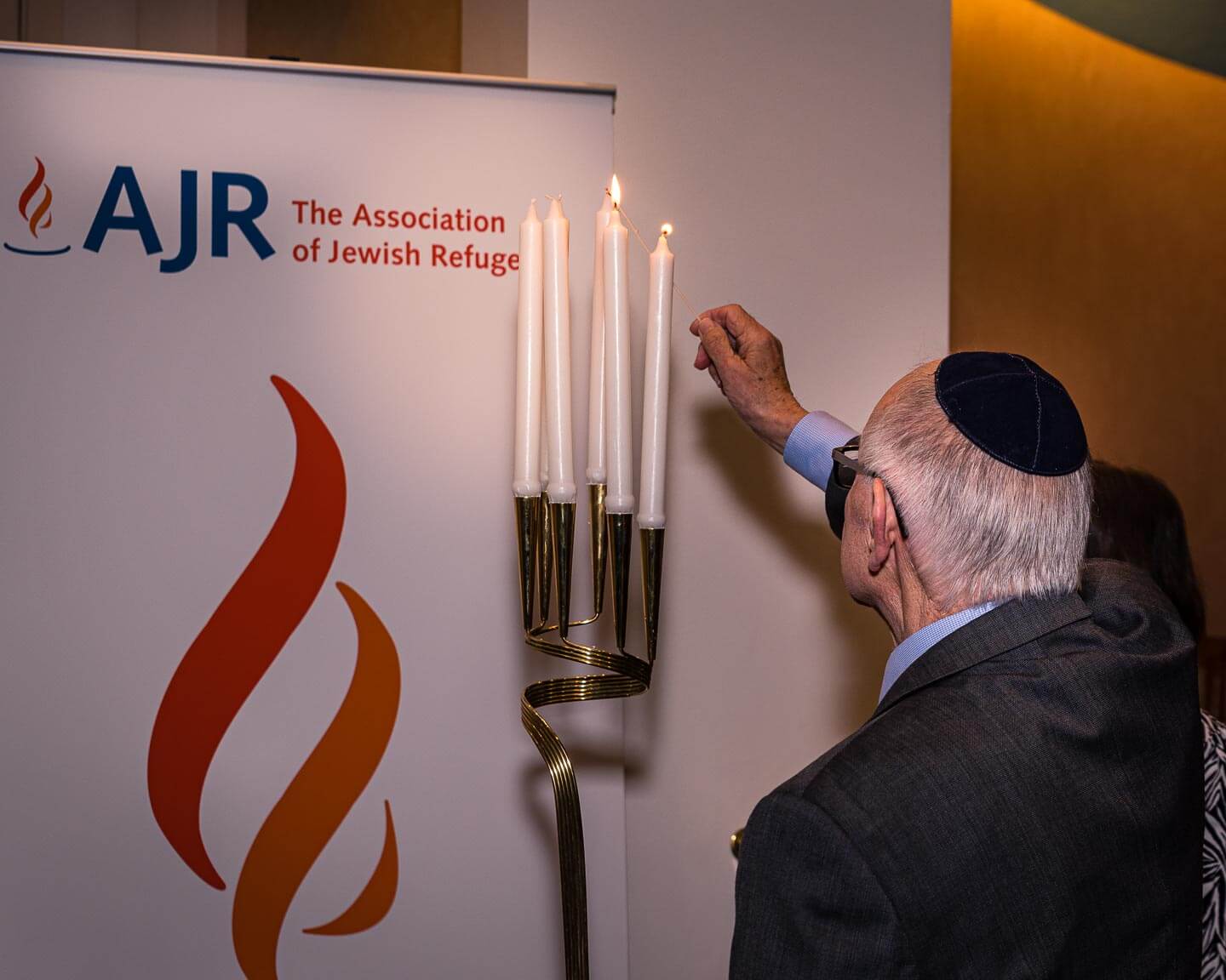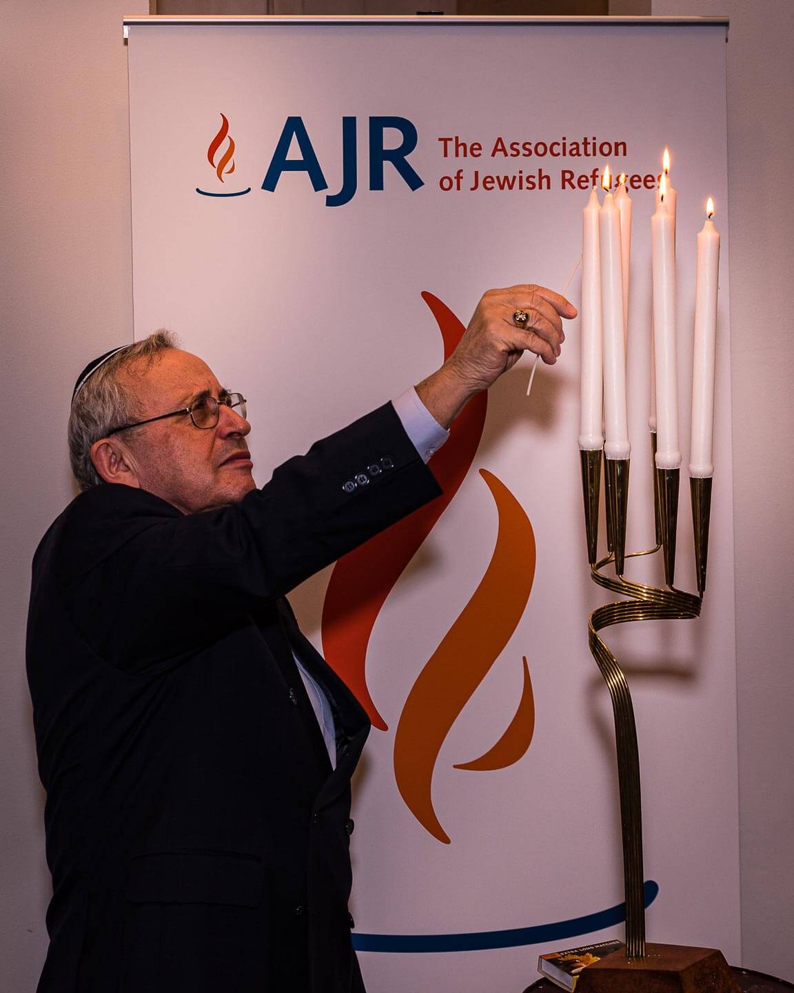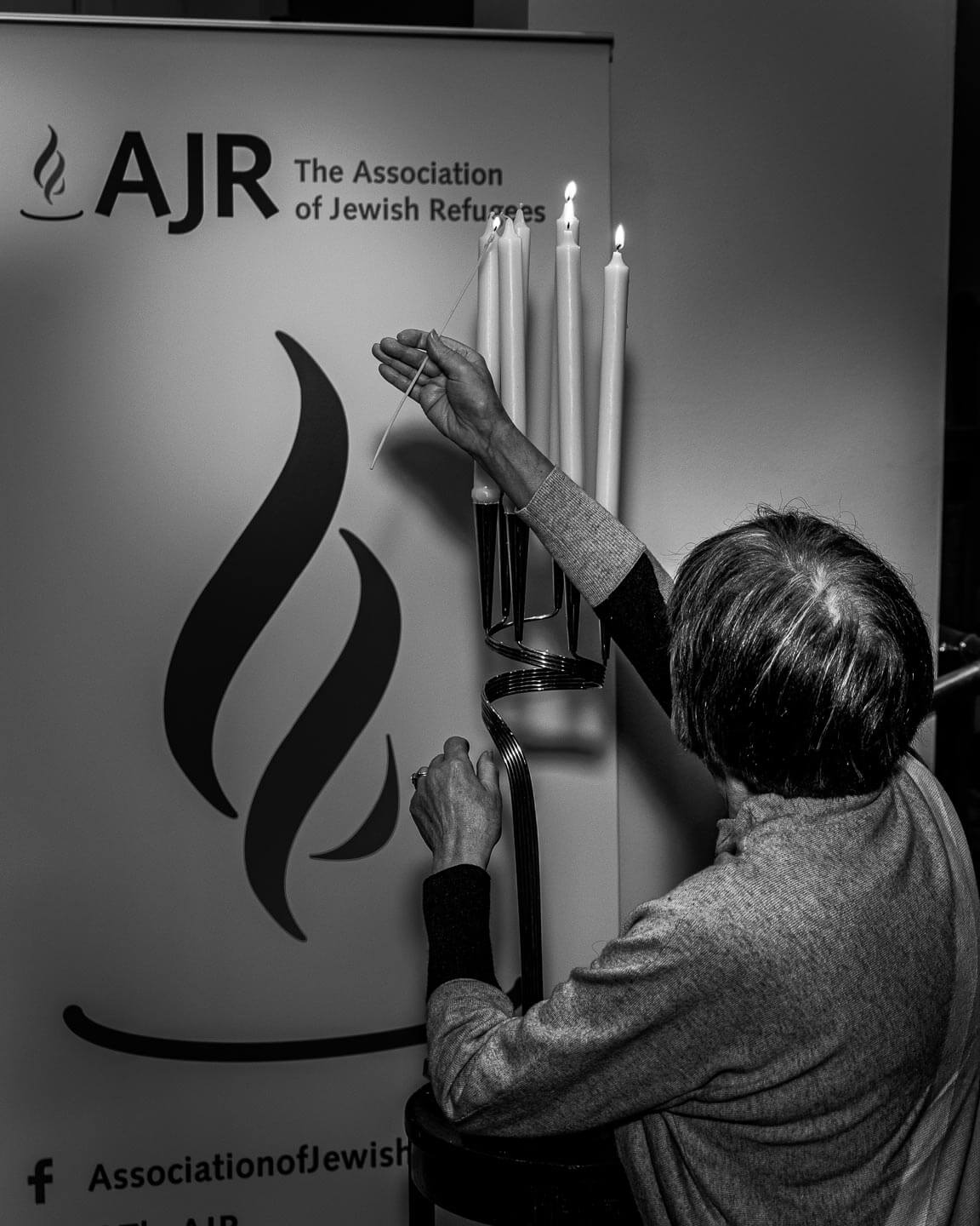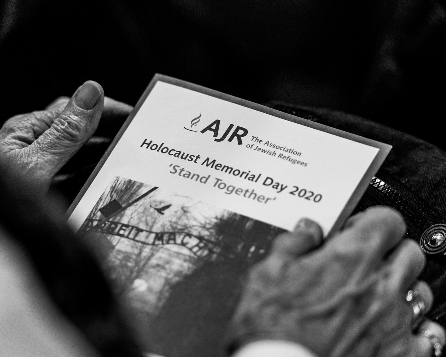 Our speakers addressed this year’s theme ‘Stand Together’. The service and candle lighting was led by Rabbi Stuart Altshuler. Auschwitz survivors Frank Bright and Zigi Shipper BEM spoke about their experiences in the infamous concentration camp and the importance of testimony and sharing history with future generations. Hephzibah Rudofsky, daughter of Lady Zahava Kohn, spoke about standing together to recount history. Jane Banham, an AJR volunteer who works on our My Story project, shared excerpts from Dr Peter Brunner, Mary Green and Suzanne Lee as recorded in their My Story books. Emma Harrod, granddaughter of Zigi Shipper BEM recited a moving poem titled, “A Prayer of a Jewish Leader in an Extermination Camp”.