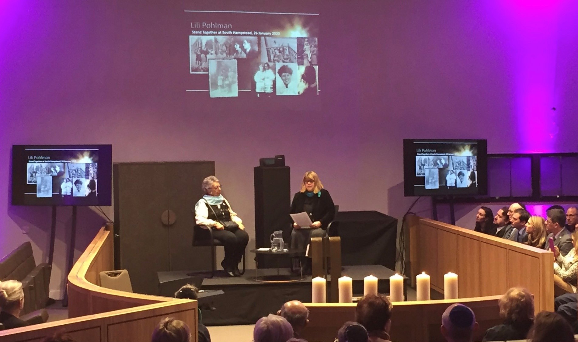 AJR sponsored the Stand Together week of exhibitions, education and talks marking the 75th anniversary of the end of the Holocaust. As part of this event, Dr. Bea Lewkowicz who runs our Refugee Voices Testimony Archive interviewed Lili Pohlman, who survived the war in hiding in Lvov, at South Hampstead Synagogue.