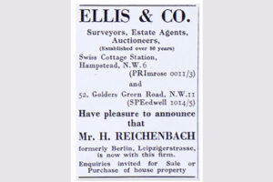 This map was created by Dr Anthony Grenville for the AJR’s Continental Britons exhibition at the Jewish Museum in 2002. Click on the map to explore a large-scale version and see a selection of the ads and notices below.