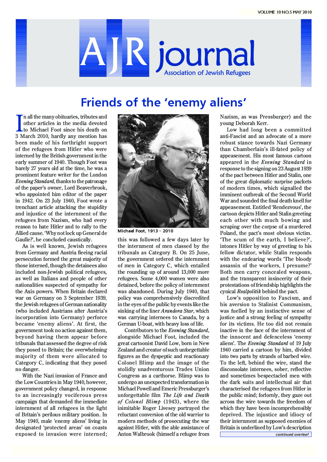 “It was like a bullet to the head,’ Gunter said, thinking back to 9 November 1938, when he was an eight-year-old in Herne, a mining town (now twinned with Wakefield) with a population of about 160,000 and some 70 miles from my mother’s home town of Duisburg. Two days earlier, Gunter’s father – awarded the Iron Cross in the First World War – had been warned of what was to happen ‘spontaneously’ on what came to be known as Kristallnacht by the ‘outraged people’ of Germany! Gunter, his father and brother had entered the magnificent synagogue in Herne, built in 1911 and featured with pride on the front page of the local paper – the same paper that would 27 years later scream out ‘Don’t buy from Jews, buy German’ – and removed the Sefer Torahs, one of which is now in Ramat Gan. My mother’s second cousin, Editha Jank- leowicz, aged six, gazed out of her bedroom window on the evening of 9 November, watching, terrified, the black smoke and flames of the burning synagogue. Soon after began the frantic efforts of parents to at least get their children out of Germany. Editha, an only child, was put on a Kindertransport to Belgium (and, when Belgium fell, on a goods wagon to France, then to Vichy France, then, towards the end of the war, to Cadiz, and then on an old, battered boat to Palestine – a story for another time). Gunter was more fortunate – a Kindertransport to England, ultimately a British citizen, now residing in New York, enjoying what his parents never would – a grandchild. How was the choice made? Who would go and who would stay? Who would live and who would die? Neither Editha nor Gunter had any idea. Both remember the time of parting at the railway station in Herne as if it were yesterday. My mother, Toni Berger, 17 years old and living in Duisburg, was sent out of Germany by her widowed mother early in 1939 in a desperate attempt to obtain visas for her mother, Channah, her sister Lottie and her brother Max. Among the few possessions she was able to take was her pocket-size siddur. 29 January 2010, Herne. Editha (now named Esther), with one of her daughters Irit and one of her grandchildren Carmi; Gunter, his wife and children with two other survivors from Herne; myself, my brother Jeff and 250 or so local dignitaries on a freezing snow-filled day, so symbolic of the hardship of camp life – all witnessed the unveiling of a beautiful memorial to the Jews of Herne who had perished in the Holocaust. A memorial illustrating every name, date and place of death, composed of concrete (mixed to the colour of Jerusalem stone) and glass with a black-slate ramp displaying the names of the camps and ghettos in which millions of Jews and others had died. In the background, the doleful sound of a Yiddish folk song ‘You watch whilst my village burns’ found by Editha and played on trumpet, trombone and tuba drifting into the cold midday air. Editha had fought long and hard to achieve this memorial service. Gunter, now over 80, well over 6ft, upright, spoke. Reliving those days back in 1938, he visibly crumpled. Editha spoke – again her memories of life in Herne. She took out the only photographs she had from her childhood: one as a sixyear- old holding a doll, the other her first day at the Jewish school. Both had been sent by Editha’s parents to my mother in England for safe-keeping and given to Editha by my mother when they found one another at the end of the war by chance. Editha’s speech, a reflection of her very being – having learned as a child how to survive: trust no one, rely on no one – was uncompromising. The speeches at an end and a minute’s silence observed, I took out of my pocket the black, leather-bound siddur – my mother`s siddur – and, after a brief explanation of the journey it had made since 1939, in memory of our uncle Max who did not survive and all the other victims of the Shoah, I and my brother Jeff recited Kaddish from that siddur, back once again in Germany.”