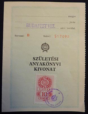 AK: Hungarian birth certificate