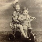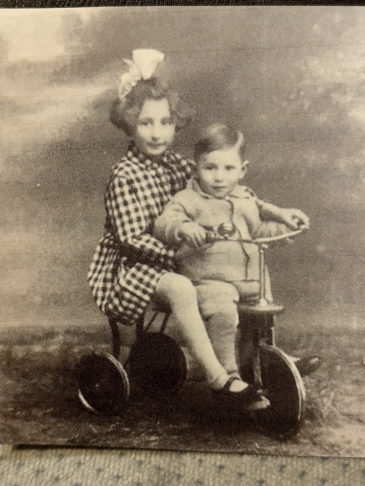 AL: With his sister Hella on a tricycle
