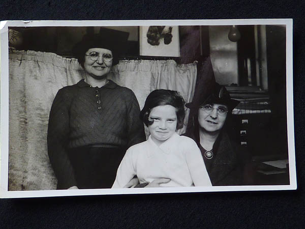 AK: In London with her aunts Millie and Sophie Levy. "Two unmarried Jewish sisters. Auntie Sophie is standing on the left. She was the younger one