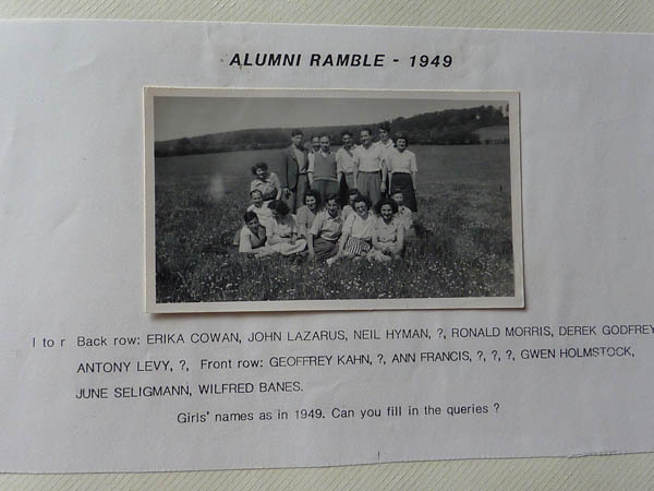 AK: The Alumni ramble in ’49. "The Alumni was the youth club of the Liberal Jewish Synagogue. And I'm in the front row