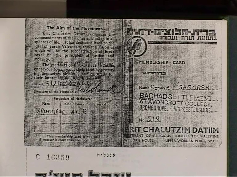 AH: Membership card for Sophie Lisagorski when she entered Evencroft College (wife of Rabbi Louis Jacobs)
