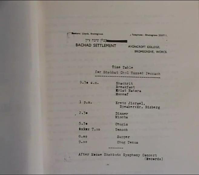 AH: Time table of Hakhsharah Centre at Evencroft College