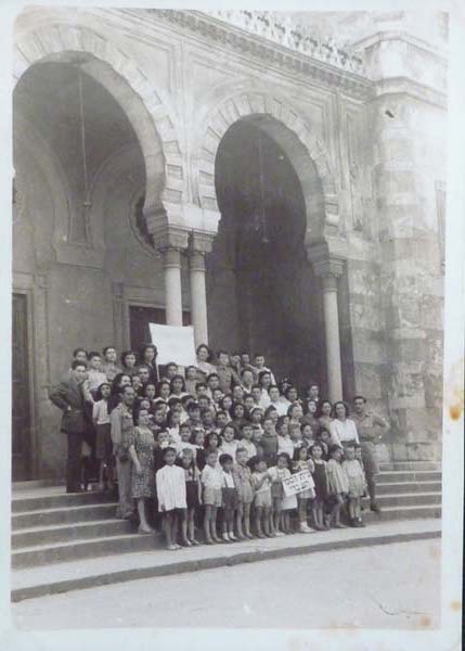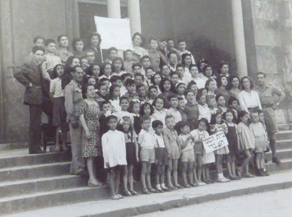 CS: Children and teachers of the reopened Jewish school in front of the synagogue in Florence