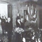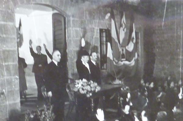 CS: Baroness Ricasoli giving a facist salute to a crowd of black shirts