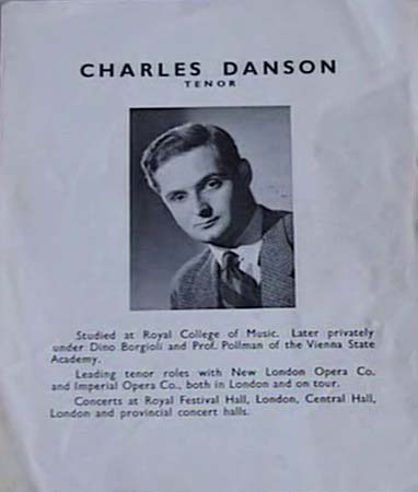 I went to Sadler’s Wells, where I met Clive Carey, whom I knew from College… he produced operas. I was in the opera class there and he said, “Oh, this is Lawrence Collingwood, this is Charles Danson. Charlie boy, would you like to sing something for us, from the stage?” I went on stage and sang Ricordita harmonia from Tosca. I came down again from the stage… And Collingwood said “… Give him the part!” And the part was… an opera by Vaughan Williams, Sir John in Love … I was given the part of Master Slender…and of course Vaughan Williams came to all the rehearsals. I’ve got the programme here… And one day he said to me, “Would you like to do Messiah for me, at my Dorking Festival?” I said, “I’d love to.” So I think it was after the - we did about fifteen or twenty performances of it…