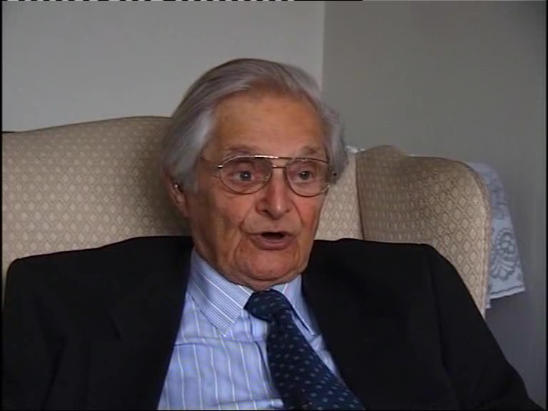 The tank was hit, there were huge flames. I remember jumping out. The gunner who hadn’t wanted to change with me was killed outright. If we'd changed it would have been me. The commander was killed outright, the driver was also injured. As soon as we jumped out the tank went up in flames, & I felt something sort of streaming down here & could see a bit of blood, but you are of course in shock so I didn’t pay much attention to it. Then we sat somewhere for half an hour. The firing had really died down. I said to my comrade in arms–he had not died, but he was either asleep or fainted or something– ‘I will see if I can find our tanks, so that we can rejoin the company’. So I started crawling forward. Suddenly, the little bush in front of me opened & 2 German officers emerged holding their pistol at me. There’s no use being a hero in situations like that. I put my hands up & was taken prisoner. I had had a terrible headache I said to one of the officers, in English of course ‘I’ve got a terrible headache, so I’d like an aspirin’. So he said to his fellow officer ‘Have you got an aspirin?’ He said ‘No, I haven’t got an aspirin, I’ve got a peppermint’, in German ‘Give him that, he won’t know the difference’, but of course I heard every word. Then they put me in the sidecar & started driving away.