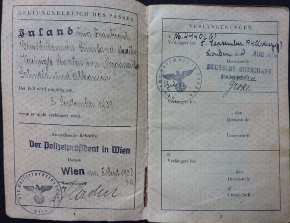 The interviewee’s immediate family was initially sponsored by her great-aunt, Helena Szarvas (nee Metall) from Poland, who had married a Hungarian and lived in Britain since c.1922. Unable to practice as a lawyer or to retrain, Felix found work in the lampshade business, while Vilma and Adele came as domestics (then virtually the only legal means of entry into Britain for adult women other than nursing). Vilma duly managed a pharmacy in Willesden Green, north London, re-qualified, and resumed her professional career as a pharmacist in Harrogate. (See details of the family’s pharmacy in Vienna).