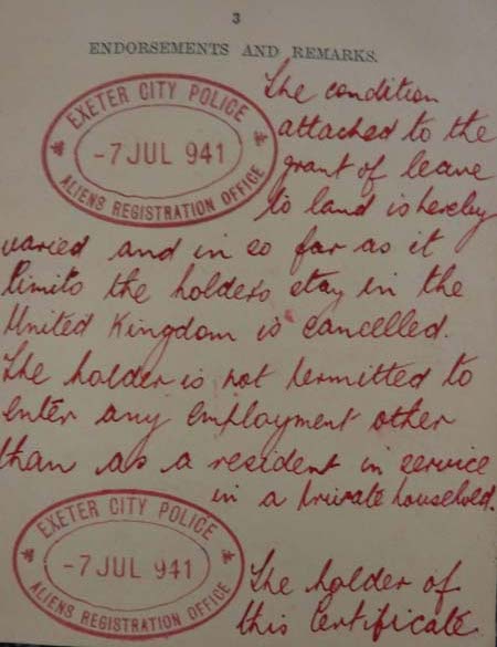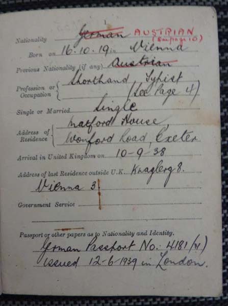 Edith left Vienna on 6 September 1938 and arrived (via Paris, where she had family) in the United Kingdom. She started her first job, as a domestic servant in Southsea, quite unprepared (“I hadn’t used a broom in my life!”), and soon her employers were disappointed with her and treated her badly (“sub-human”). This, combined with the trauma of separation from her family, led her to suffer a nervous breakdown. Her employers called the local rabbi, who helped her find work as a “mother’s help” with a family in Golders Green. This was the first of numerous jobs—so many that Edith cannot manage to remember all of them. Her life improved when she started working as a secretary in Exeter. She felt valued, free and treated like a “human” again. In Exeter, Edith also lived in a boarding house (run by a German refugee) with her maternal aunt Ida. Edith’s maternal family had managed to leave Austria in time and was scattered throughout the entire world—the United Kingdom, Australia and South America—and she stayed in touch with them following World War II.