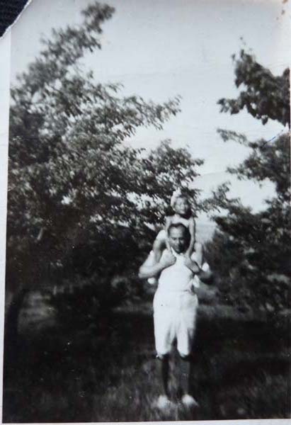 EB: With father. "I’m in the fruit orchard with my father. He bought a fruit orchard in 1942. He absolutely adored it."
