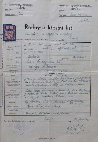 EC: Christening certificate. "After the war my mother was obviously in a highly emotional state