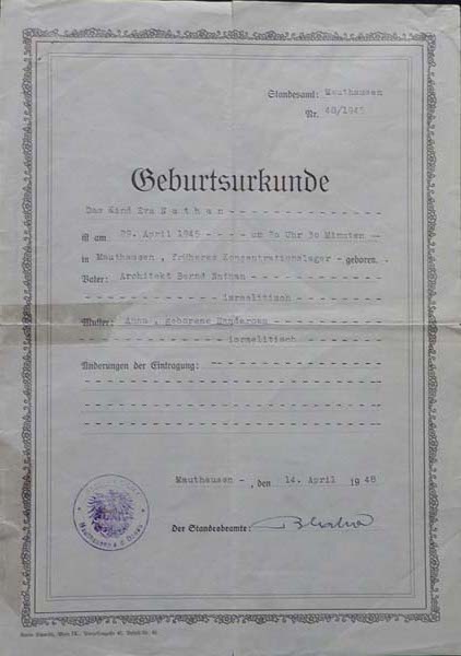 I was born in Mauthausen concentration camp in Austria. [in late April 1945]