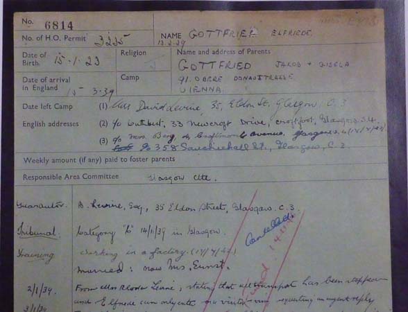In March 1939 Eve travelled by train on a Kindertransport to Britain. She recalls the arrival in Holland and the sense of relief of being free. She was ill on the boat and they arrived at Liverpool Street Station, where she was met by Mr Levine, a Jewish man from Glasgow. They travelled to Glasgow and she joined the family as an au pair. She was used as a maid, had to sleep in the kitchen and did not receive a lot of food or any emotional support. She felt very isolated and lonely in this family and had to work very hard. Her mother had packed some chocolate for her journey on the Kindertransport and Eve recalls rationing small pieces of the chocolate so that it would last longer. One day a Christian couple, who were friends of a family who fostered another Kindertransportee, came and invited her for tea. When she told them about her situation, they advised her not to stay the Levines and offered her to come and stay with them. Mrs Levine refused to give Eve her belongings and wrote to the Home Office, as she did not want Eve to leave. So Eve moved in with the Cuthberts. After some time she accepted another au-pair position with a Czech family, the Bergs. This was a better situation but there was also a fair amount of argument. On one day the neighbour who must have heard some heated discussion said: ‘Come over the fence, hen, you can stay with us.’ Eve was very grateful to the Mr and Mrs Lochhead who took her in and gave her love and affection. She stayed in touch with them her whole life.