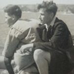 April 1939 was ‘exciting’, selling family possessions, though Frank’s ‘excitement was mixed with foreboding’ about leaving Germany. Knickerbockers and brown shoes were ordered for the boys, only to have the ‘funny clothing jeered at’ in Britain. The family arrived in Harwich via Holland and were met by Sofia’s relatives in London, then taken to Kilburn, where the boys attended Essendene elementary school. Learning English at school, they were ‘not aware of difference’ until they returned home and spoke German, or Sofia asked for a ‘flasche (bottle) of juice’.