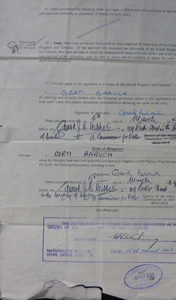 Once her mother rented a flat in Holmfield Court in Belsize Park, Gerti and her sister moved and they lived together. They often went to the shelter in Belsize Park tube station and Gerti worked for a clothing factory and later helped her mother with dressmaking. Gerti attended various art schools. She was introduced to her future husband, who had come to the UK on a Kindertransport from Frankfurt an der Oder.  They got married in 1947 and had two children.
