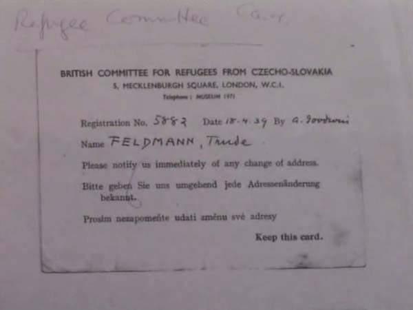After the German annexation of Austria, where relations lived, her father began to look for ways to emigrate. Trude’s aunt and husband, Telcher, came to England on their way to America and they made arrangements for her brother and then her sister to come over. Another aunt came over in March 1939 as a domestic servant and she brought with her 5 year old daughter and Trude. Trude was still in Bratislava when Germany invaded Czechoslovakia, and she remembers the feeling of fear. School ceased and they stayed at home. Her parents never came and her father was taken to Auschwitz. Her mother was alive until 1944 as a nurse but then disappeared.