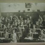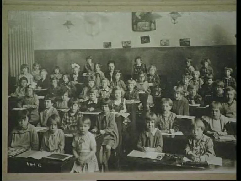 GF: School photo. Gisela is the very first girl sitting in the third row on the left by the aisle