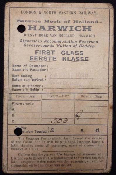 HB: Boat ticket from Holland to Harwich
