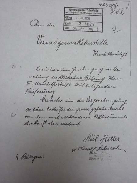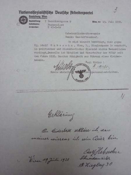 HB: Letter from the local NSDAP - "certificate of political harmlessness" for the potential buyer of his father's shop