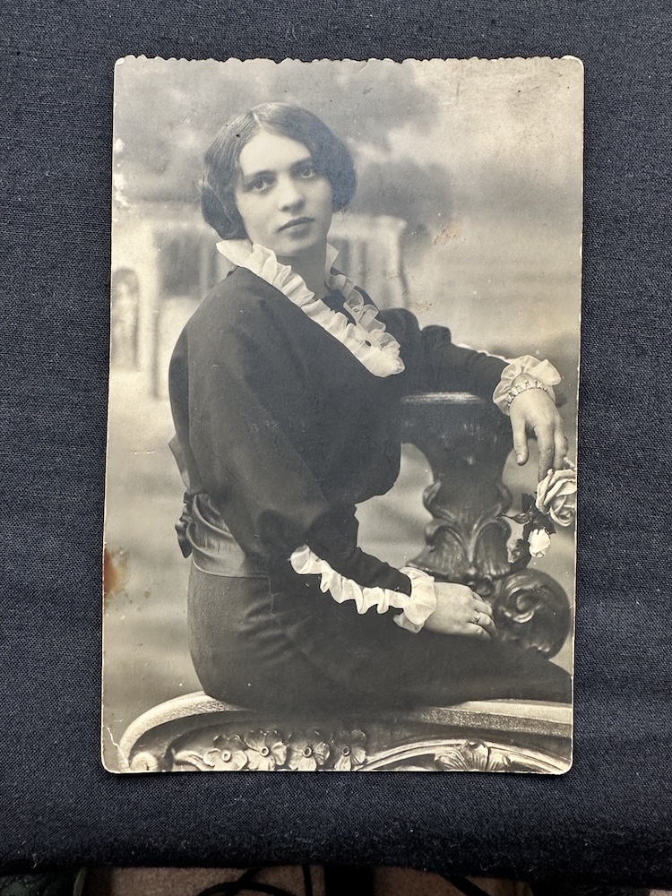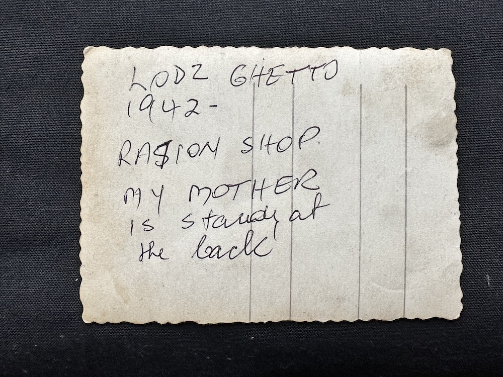HA: Back of the photo of the shop in Lodz Ghetto with Helen's mother