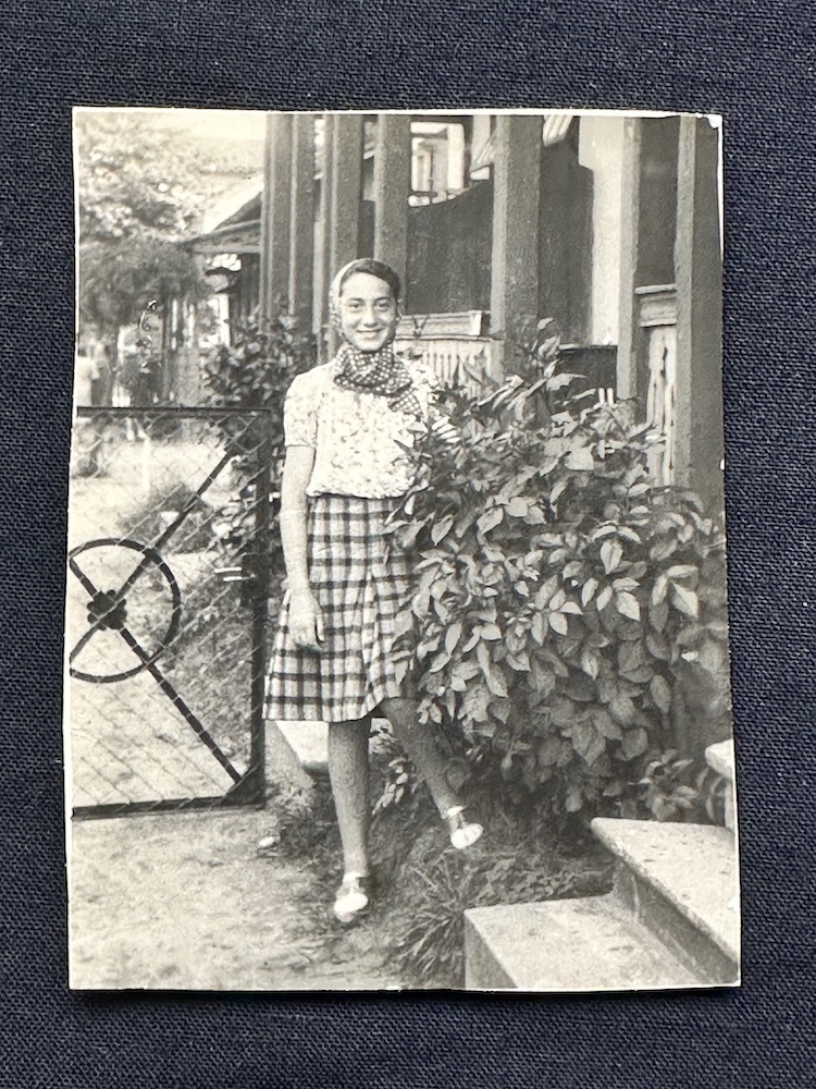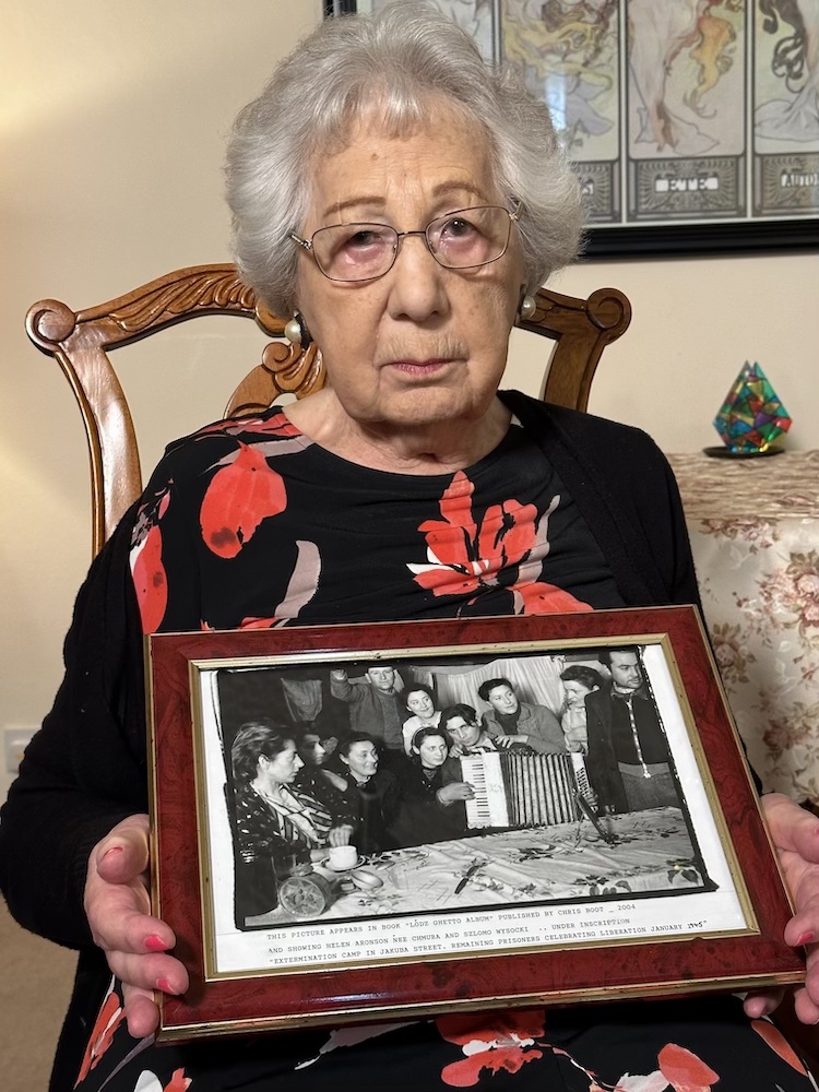 Helen Aronson was born Helen Chmura in April 1927 in Pabianice, Poland. She remembers a happy childhood with her siblings Marilla and Henry. Her father Mordechai Chmura, an accountant in a silk factory, was the chairman of the Zionist movement, her mother Frania née Katz was at home with the children.