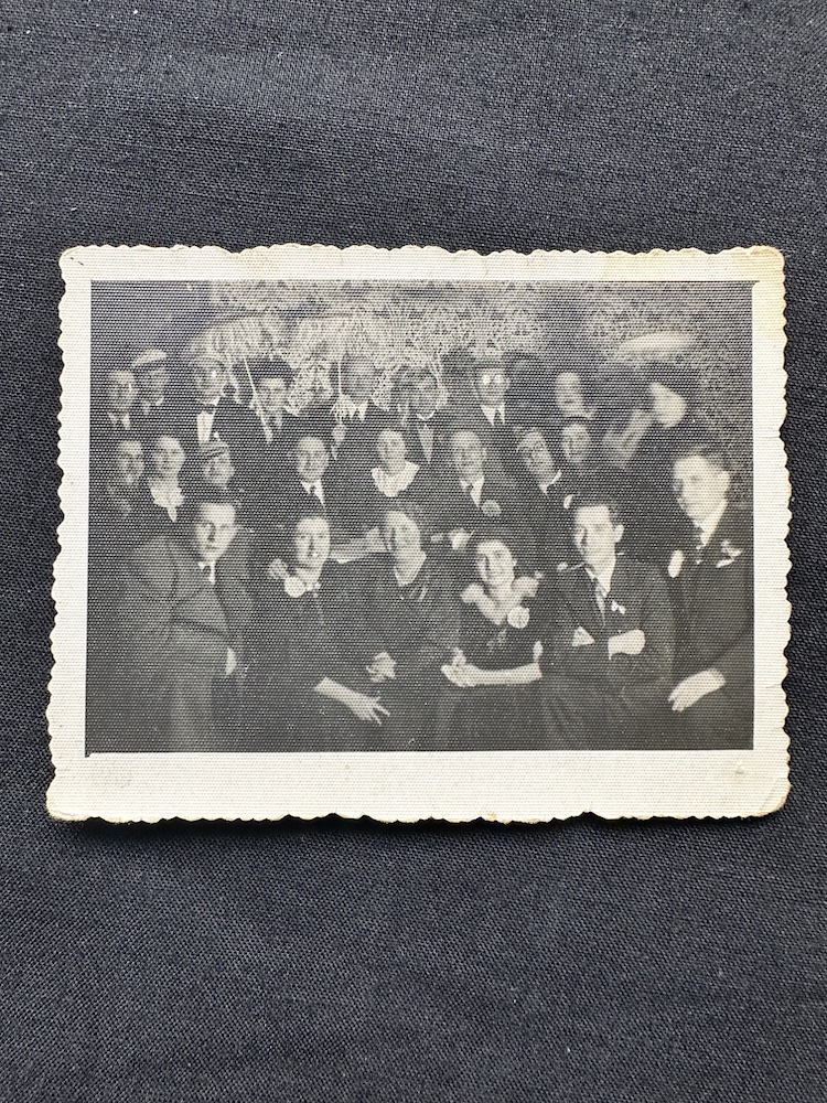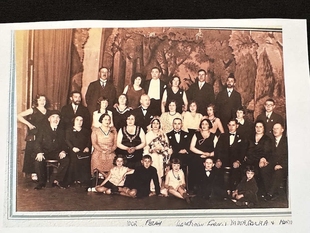 HA: "Aunt Fella's wedding in Łódź and most of the family is there. And on the floor is myself (far right)