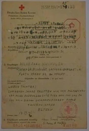 HS: Red Cross messages from parents. "at first they could be sent from here to Germany but they took ages to get there because they had to be controlled here and there… going through several controls. By the time they arrived – whichever way - they were almost out of date