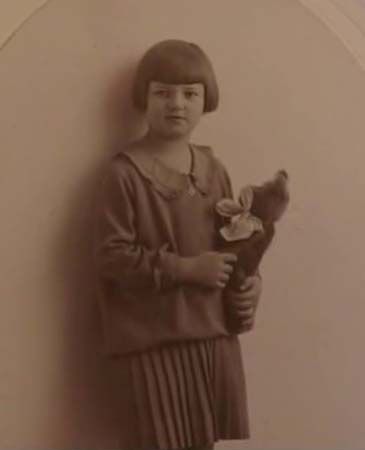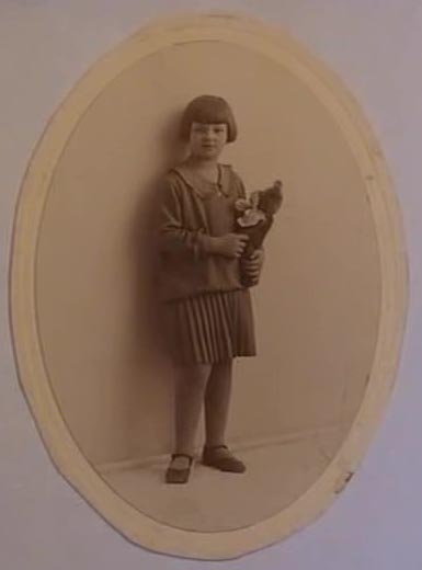 HS: At age 7 or 8 "with one of my smaller teddies."