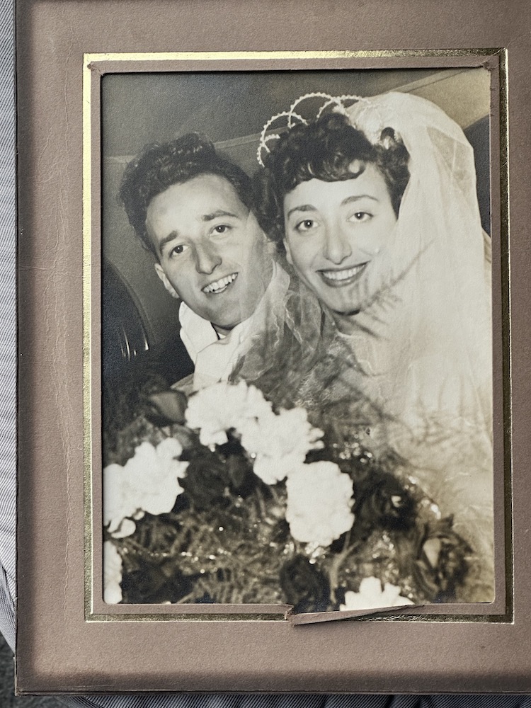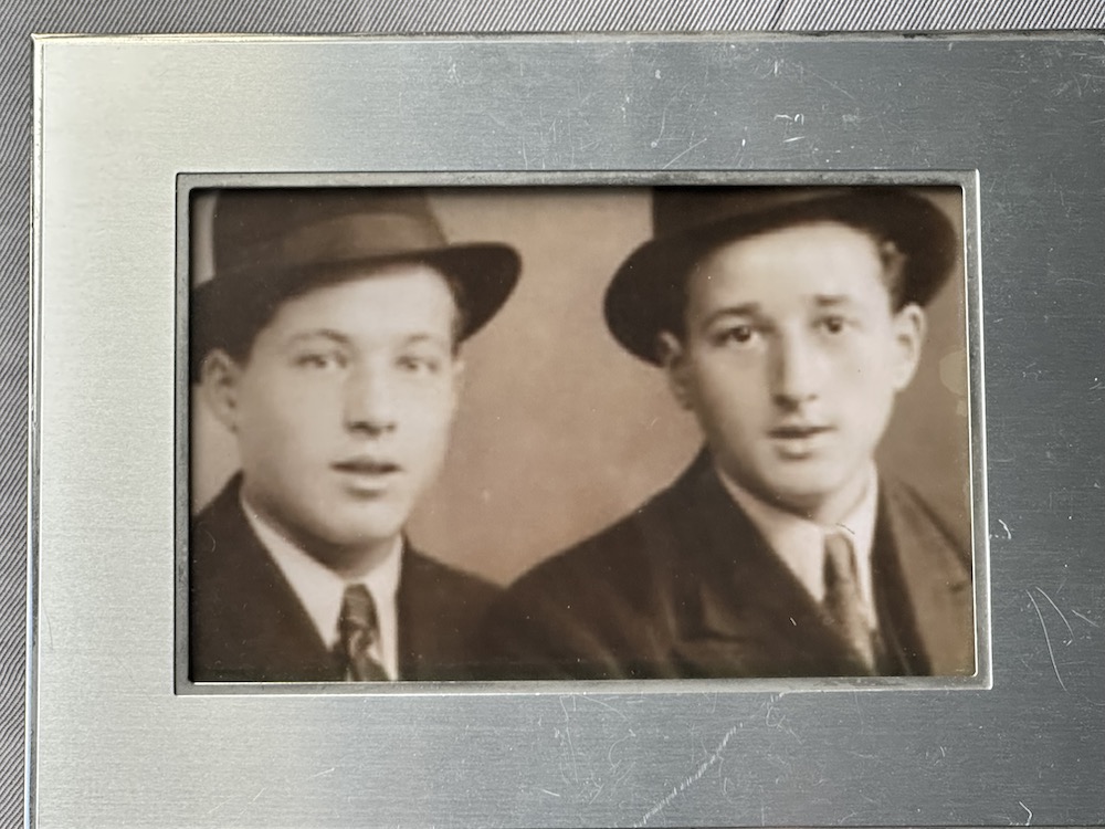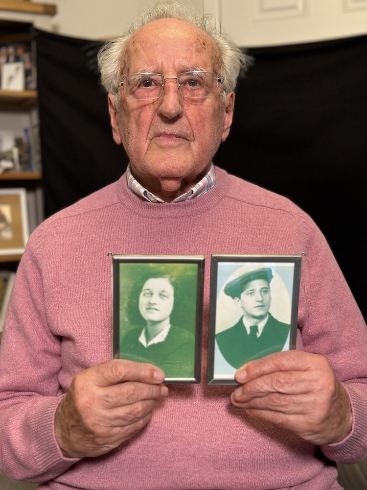 IP: Ivor holding photos of his older siblings Reisel and Mordechai