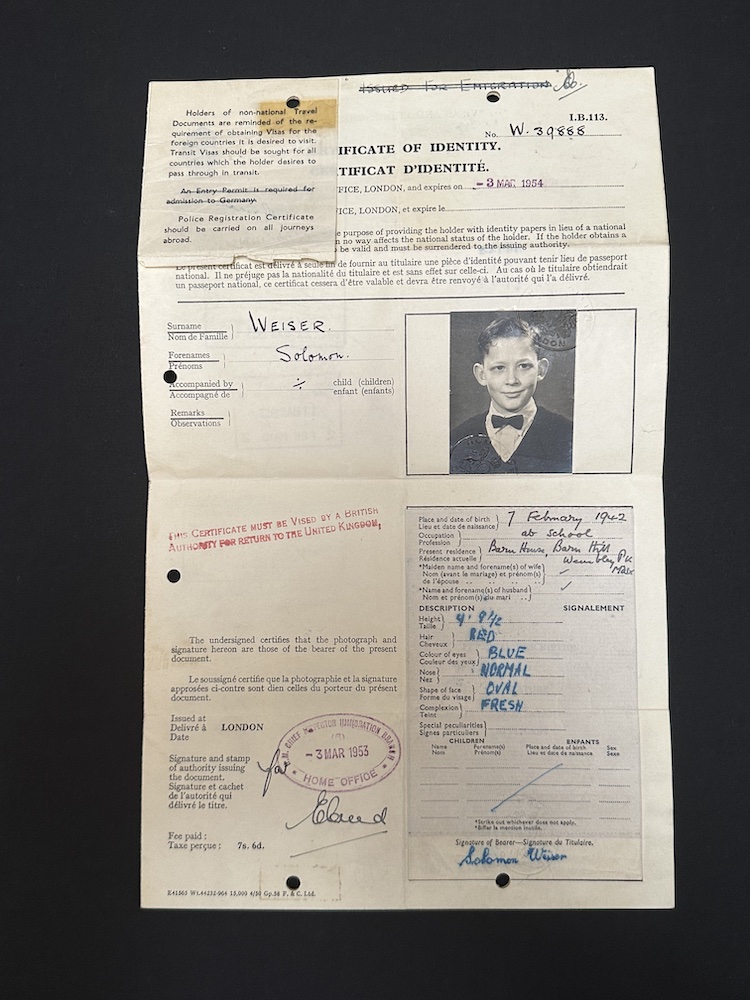 JW: Certificate of identity issued in England in order to travel to Southern Rhodesia via South Africa