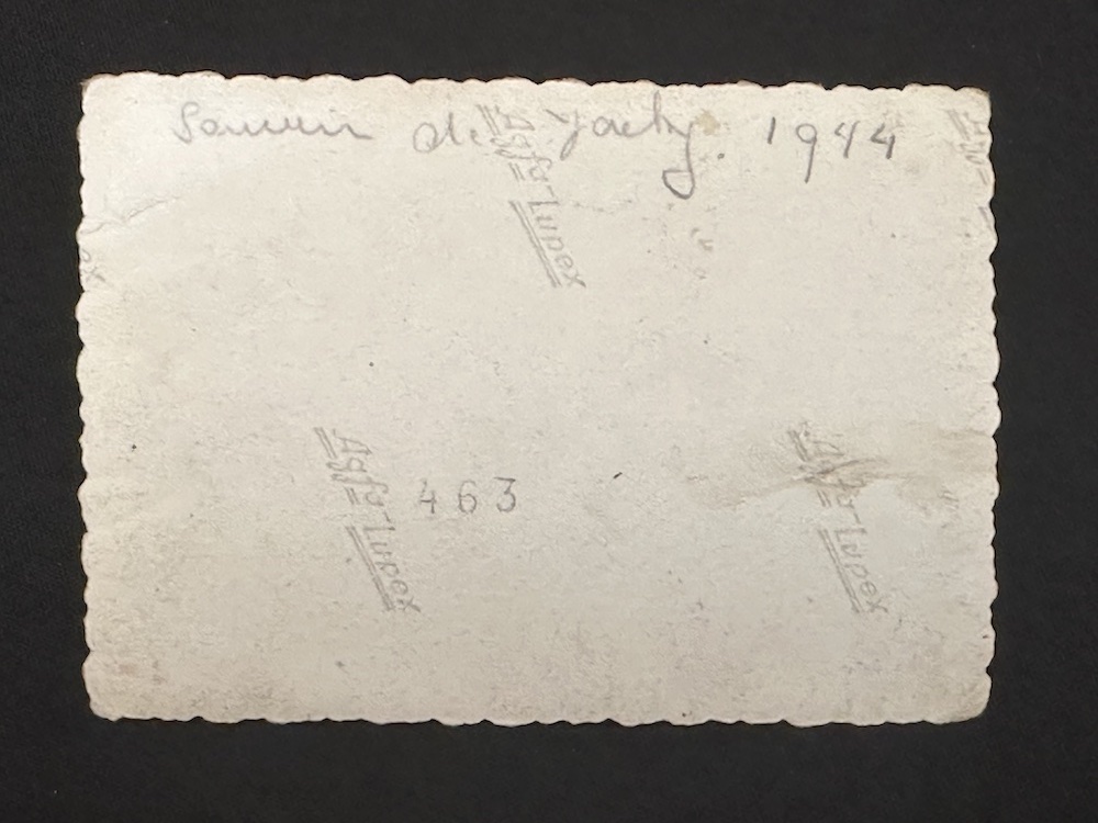 Many years later I found the lady who was involved in hiding in me in the Ardennes. I found her name, Mme Wittamer. I managed to make an appointment to see her but she never turned up. I subsequently learnt that she’d married & never told her husband that she’d hidden a child during the war. My father says that when he found me she didn't want to give me up. A lot of them didn't. She wanted to keep this child. He never talked about her either, which again I found subsequently difficult to understand because it was the last step, if you like, in the life story of being alive. The Resistance put me with her in the Ardennes. And, for whatever reason, no information of any kind from any of the family, apart from the fact that they may have met her once. Not from my father, not from my stepmother, not from anybody. That in a way hurts because that would have been [sighs]—it would have been good. To close the circle I suppose. I only know her first name because there is a card that was found. Her name was Wittamer. For many years I had photos of me, I knew it was me but where they came from, where they were taken, I had no idea. One of them gives my name. On the back of one of the photos: 'souvenir de Jacqui'. Who wrote it, no idea. There's so many different layers—the puzzle, you know, trying to find the bits & pieces, it’s complicated, complex.