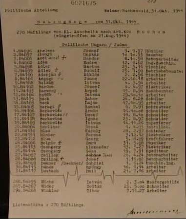 JC: The transport list of prisoners taken from Auschwitz to Bochum