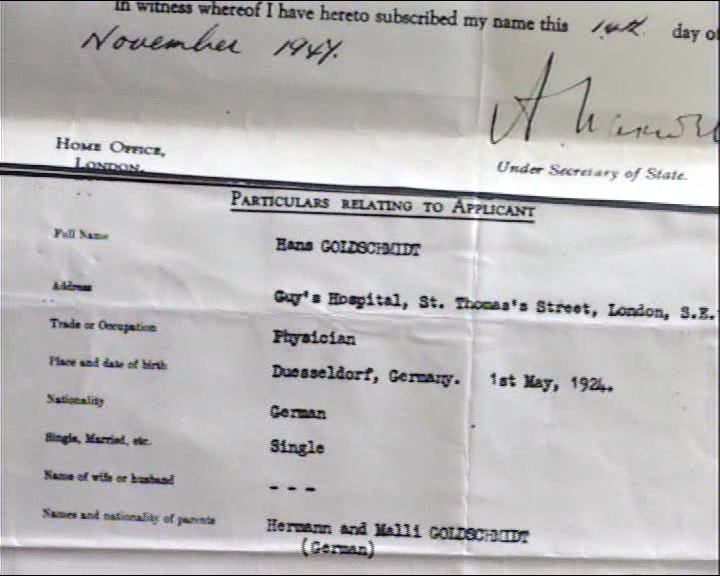 In 1937 John’s mother was given permission under a British government scheme to come to the country to work as a dentist without re-training. Through Mrs Berkhill she found a position in Cambridge. John attended Leys School there was interned in 1940 on his 16th birthday. He was taken to Huyton, then to the Isle of Man and then in July 1940 he was put on the SS Sobieski, a Polish ship and taken to Canada. He came back in Jan 1941 and returned to school to take his exams, which he had missed. He got a place for dentistry in Guys Hospital, London University, and in his first term transferred to medicine. After qualifying he worked as a houseman in Guys and then somewhere else before joining the RAMC in 1948 for one year. He served in Egypt and for a short time in Ireland. He never experienced any antisemitism.