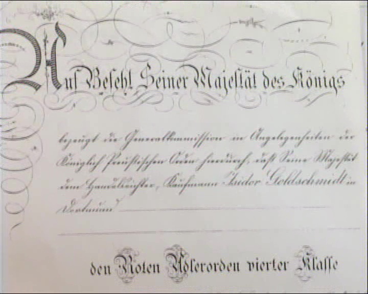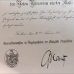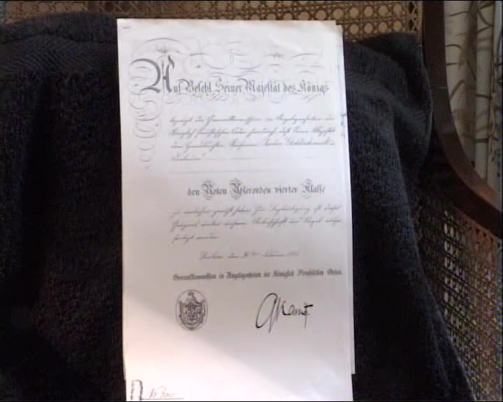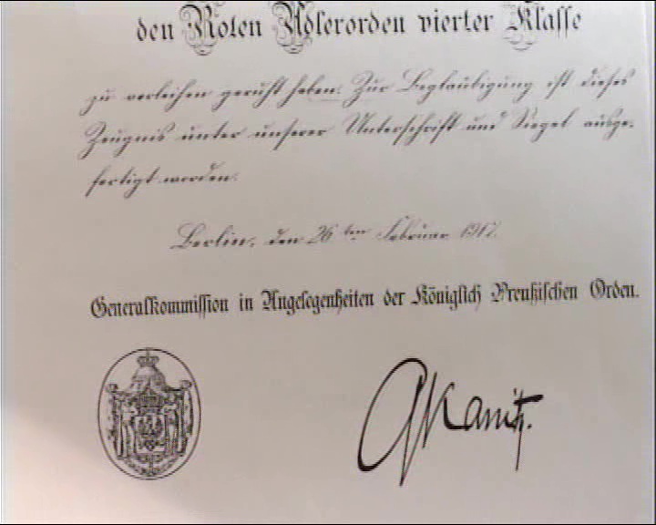 JG: Document stating his paternal grandfather Isidor Goldschmidt received the Order of the Red Eagle fourth class. Photo 1917 in Dortmund.