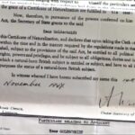 JG: Section of his certificate of naturalisation