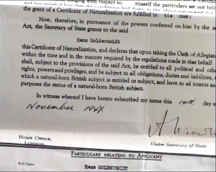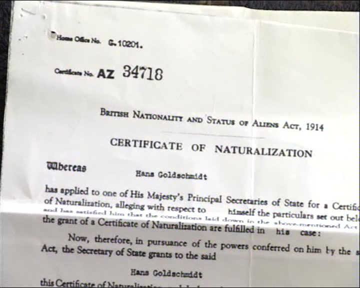 JG: Certificate of naturalisation as Hans Goldschmidt