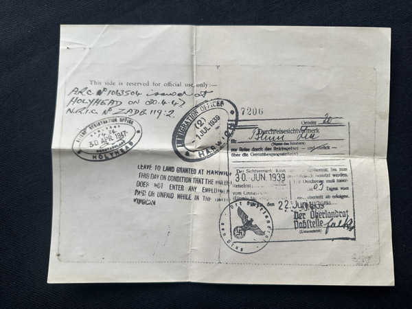 LL: Cover of Lia's passport she travelled on to England on the last day of June 1939.