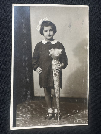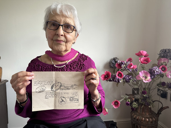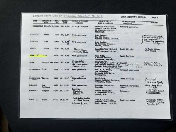 Lia Lesser was born Liana Blumova in 1931 in Teplice-Šanov, Czechoslovakia, to divorced parents who both remarried. Her mother Ida ran a haberdashery shop and her father Pavel was a commercial traveller. She remembers a happy childhood with grandparents and cousins and no antisemitism. She doesn’t remember her journey to Britain on a Kindertransport organised by Nicholas Winton but remembers the devastating scenes of children of all ages saying goodbye to their distraught parents at Prague station.