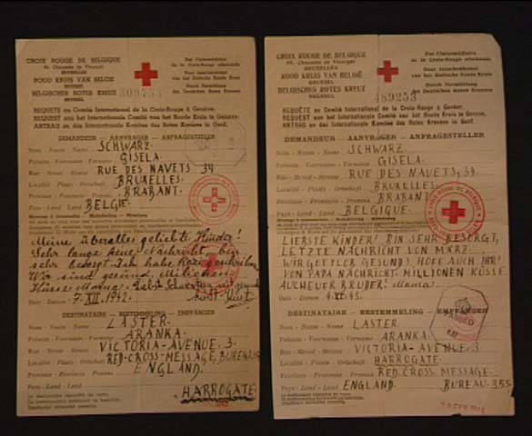 LP: Red Cross letter from mother and brother: "Beloved children! Haven't had news in a long time - worried...A million kisses..." Brussels December 1942