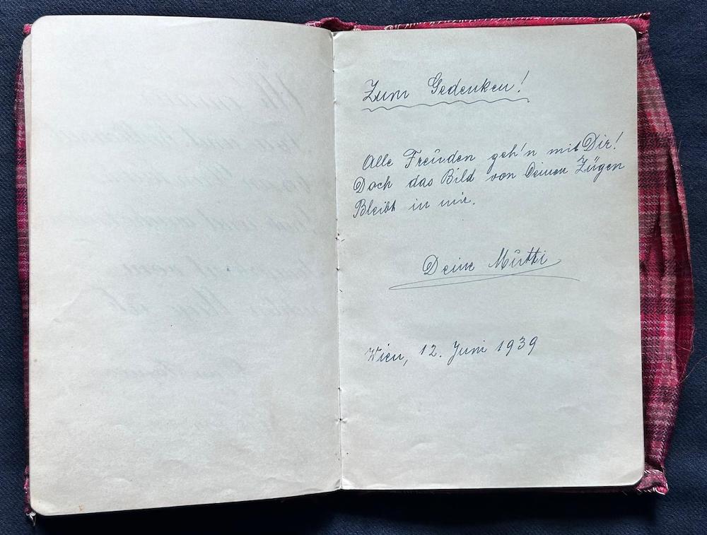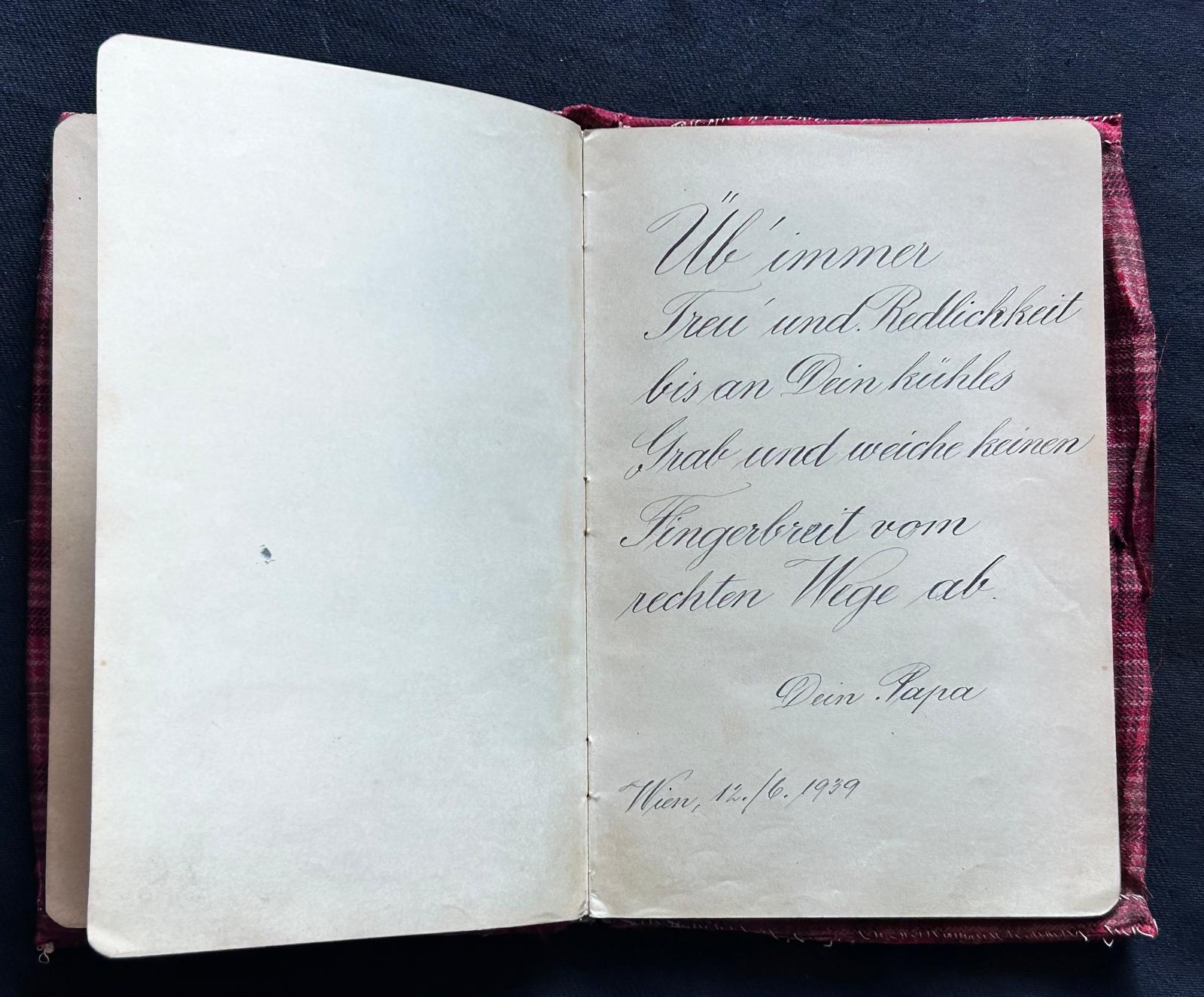 LL: Autgraph book; my father wrote the day I left Vienna: ‘You've always got to be honest in life and never do anything wrong.’