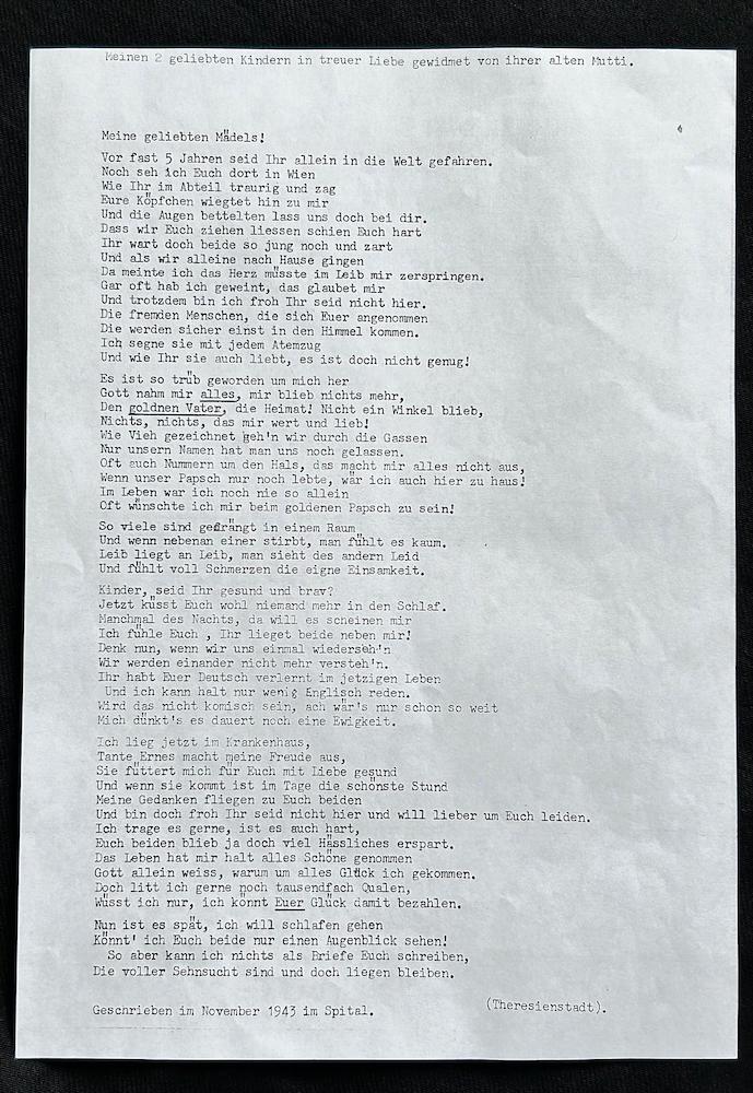 LL: Typed version of her mother's last letter (written in Theresienstadt)