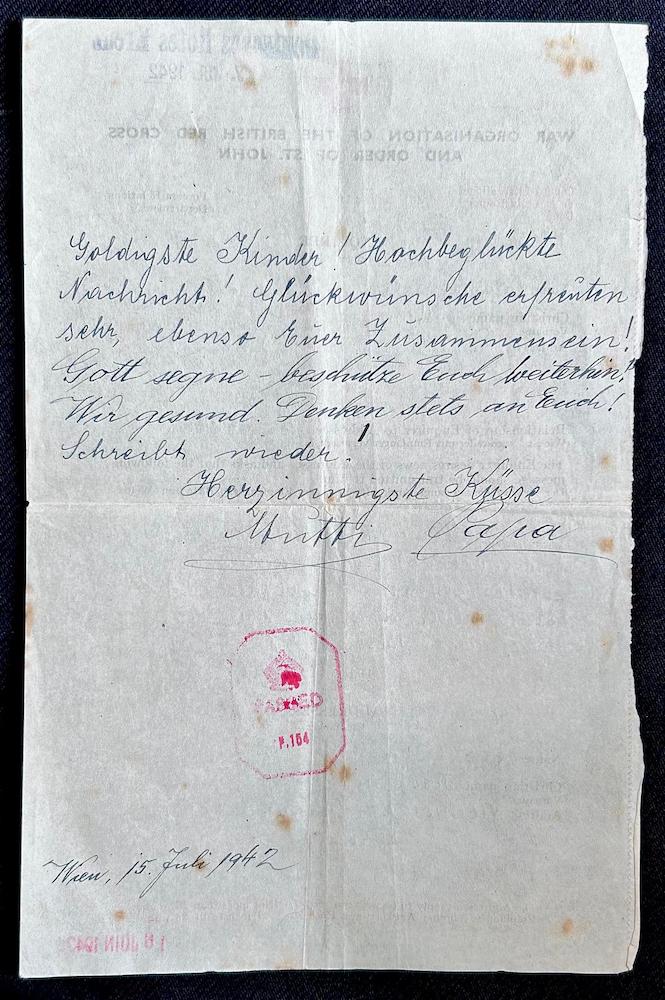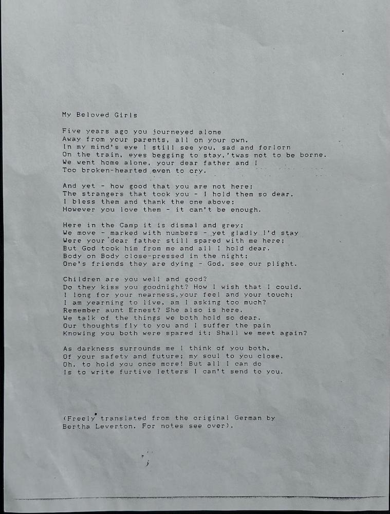LL: Translation of her mother's last letter (written in Theresienstadt)