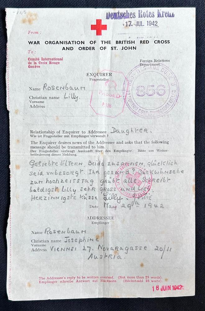 Lilly Lampert was born in July 1929 to parents Arthur and Josefine Rosenbaum née Löwi in Vienna. She lived in a flat in Novaragasse 20 until she came to England on a Kindertransport. Her mother was a homemaker and her father worked in an office and took Lilly on Sunday walks in the Prater. The family was not religious and didn’t often go to synagogue.