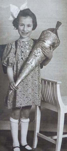 MR: Meta holding a school cone (Schultüte) on her first day of school