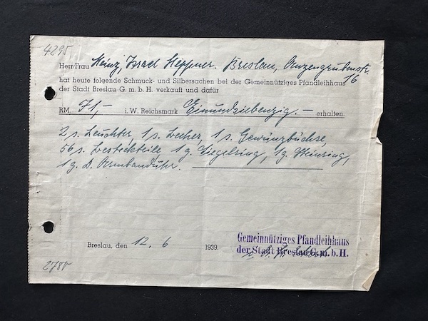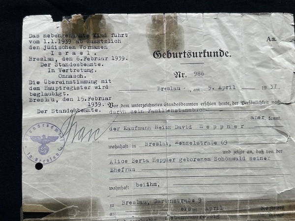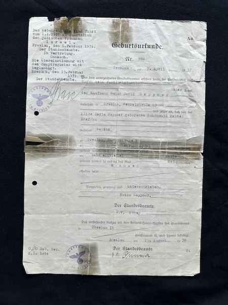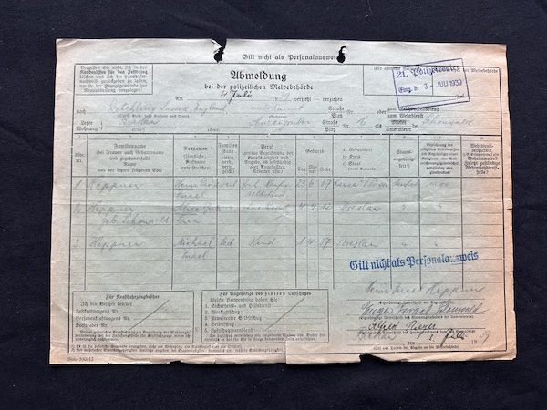 Michael Heppner was born in April 1937 in Breslau, present-day Wrocław, Poland, as the only child to parents Alice and Heinz Heppner. His father’s family owned a matzah factory and his parents were members of the liberal synagogue in Breslau. They contemplated emigration but dismissed it thinking that things would change back to normal sooner or later. However, when Michael’s father was interned in Buchenwald after the November pogrom (Kristallnacht), his mother had to organise emigration immediately as a prerequisite for his release. Her sister and her sister’s husband were already in the UK on a domestic visa and, with the help of a lady named Beryl McIntyre, they arranged for Michael’s parents to get domestic visas too. They left on the MS Roosevelt from Hamburg to Southampton, arriving on the 4th July 1939 while other family members escaped to Shanghai.